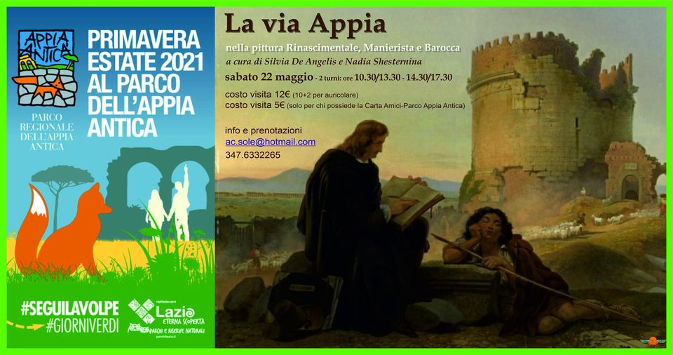 Partendo da Cecilia Metella, parleremo della pittura di Raffaello, Poussin, Dughet che hanno preso ispirazione per i loro dipinti dal paesaggio dell’Appia Antica creando una fusione tra il paesaggio e le figure mitologiche e cristiane, fino ad arrivare al paesaggio romantico dei pittori del Grand Tour.