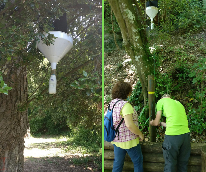 “InNat” è un progetto al quale il Parco ha aderito nel 2018, con la finalità di accertare la presenza della specie Osmoderma eremita, protetta dalla Direttiva Habitat, all’interno dei siti di interesse comunitario della “Rete Natura 2000”, con l’obiettivo di tutelarla e di diffondere tra la popolazione la conoscenza sia di quest’ultima, che delle specie di insetti protetti attraverso un programma di Citizen Science. Le trappole a forma di imbuto mappate con GPS e numerate, sono state posizionate lungo i transetti (area di rilevamento) prestabiliti, e sono state in seguito caricate con una particolare sostanza denominata feromone che serve ad intercettare ed attrarre i coleotteri. I controlli vengono effettuati ogni settimana per circa 5 settimane, ad ogni verifica devono essere annotati sull’apposita scheda gli individui catturati e fotografati, che vanno in seguito rilasciati. Il procedimento è utile a comprendere lo stato di conservazione delle popolazioni e il loro andamento nel tempo, ciò per valutare se la specie è a rischio estinzione e se l’habitat è sufficiente a garantirne il mantenimento.