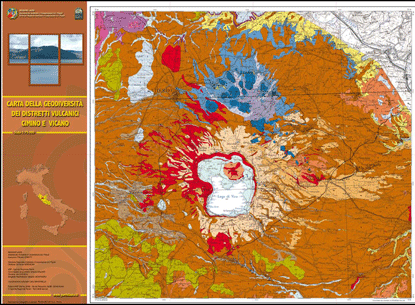 Carta delle geodiversità dei distretti vulcanici cimino e vicano in scala 1:75.000 a cura di Cimarelli C. & de Rita D. del Dipartimento di Scienze Geologiche dell'Università degli Studi Roma Tre. Anno di pubblicazione: 2008 Edizioni ARP