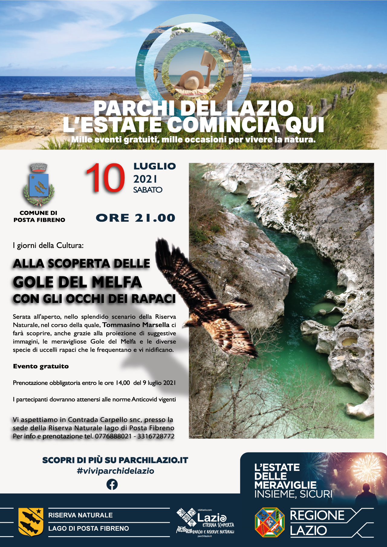 Sabato 10 luglio 2021 alle ore 21,00 con "Alla scoperta delle Gole del Melfa" proseguono le serate dedicate alla cultura dalla Riserva Naturale Lago di Posta Fibreno.