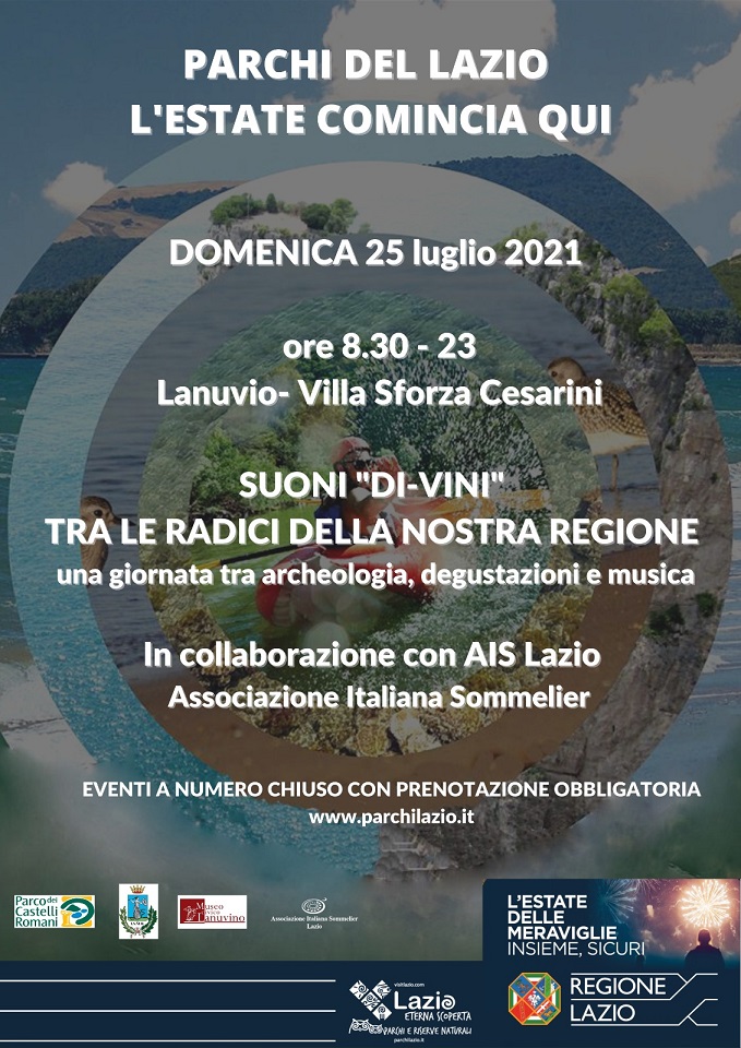 Si svolgerà domenica 25 luglio l’evento Suoni “Di-Vini”, tra le radici della nostra regione, inserito nella programmazione “Parchi del Lazio: l’estate comincia qui”.