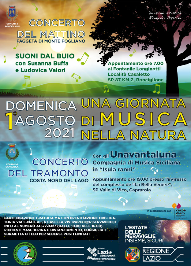 Un doppio appuntamento per gli amanti della musica e della Natura con il Concerto del Mattino ed il Concerto del Tramonto.