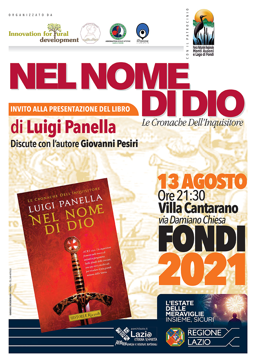 Nuovo appuntamento nel giardino della struttura regionale per questa estate 2021. L’autore Luigi Panella presenta “Nel nome di Dio”, libro che ha inaugurato la nuova collana “Historiæ” delle edizioni Rizzoli, dialogando con lo storico Giovanni Pesiri.