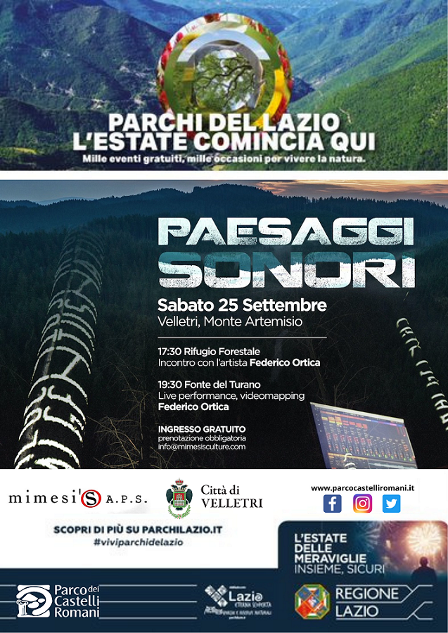 Sabato 25 settembre dalle 17.30 “Paesaggi Sonori”- Progetto di valorizzazione territoriale ed innovazione tecnologica. Gli alberi parlano fornendo dati sui diversi parametri eco-fisiologici. Casa del Parco Rifugio Forestale di Monte Artemisio, Velletri. Attività per tutti, prenotazione necessaria: info@mimesisculture.com