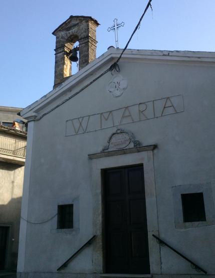 Posta all'inizio del paese, la chiesa è piuttosto piccola e presenta una navata centrale ed una laterale. All'interno sono conservati affreschi del XV e XVI secolo, di autore sconosciuto. In particolare, degno di nota un venerato affresco su roccia riproducente la Vergine con il Bambino.