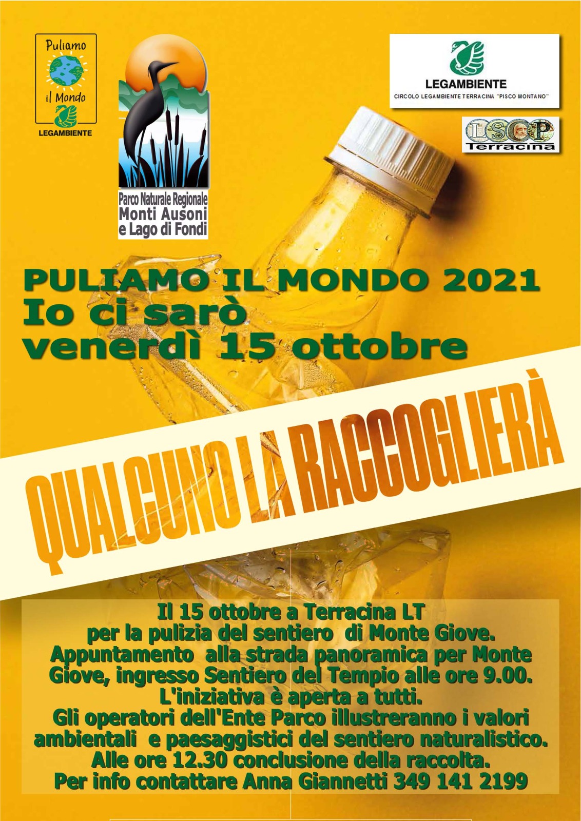 Il Parco Monti Ausoni e Lago di Fondi con il circolo Legambiente Pisco Montano Terracina e l'Istituto Superiore Leonardo da Vinci, il 15 ottobre a Terracina, cureranno la pulizia del sentiero di Monte Giove.