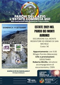 Nell'ambito della rassegna "L'Estate delle Meraviglie" nel Parco dei Monti Aurunci, il 19 settembre 2021 sarà prevista una visita guidata sul Monte Redentore, all'Eremo di San Michele, alla scoperta del patrimonio storico e naturalistico del territorio aurunco.
