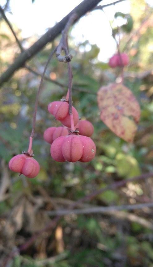 In autunno si possono osservare i frutti,capsule a quattro lobi di colore rossastro (TOSSICHE!),che aprendosi evidenziano semi di colore arancione