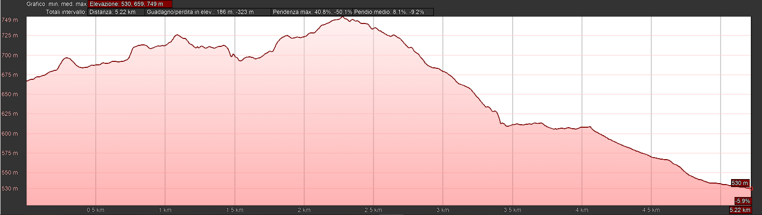 Il percorso ha inizio dal Comune di Rocca Priora e passando nei pressi del Bosco del Trinciotto (proprietà del Parco dei Castelli Romani) prosegue scendendo fino al Bosco del Cerquone.