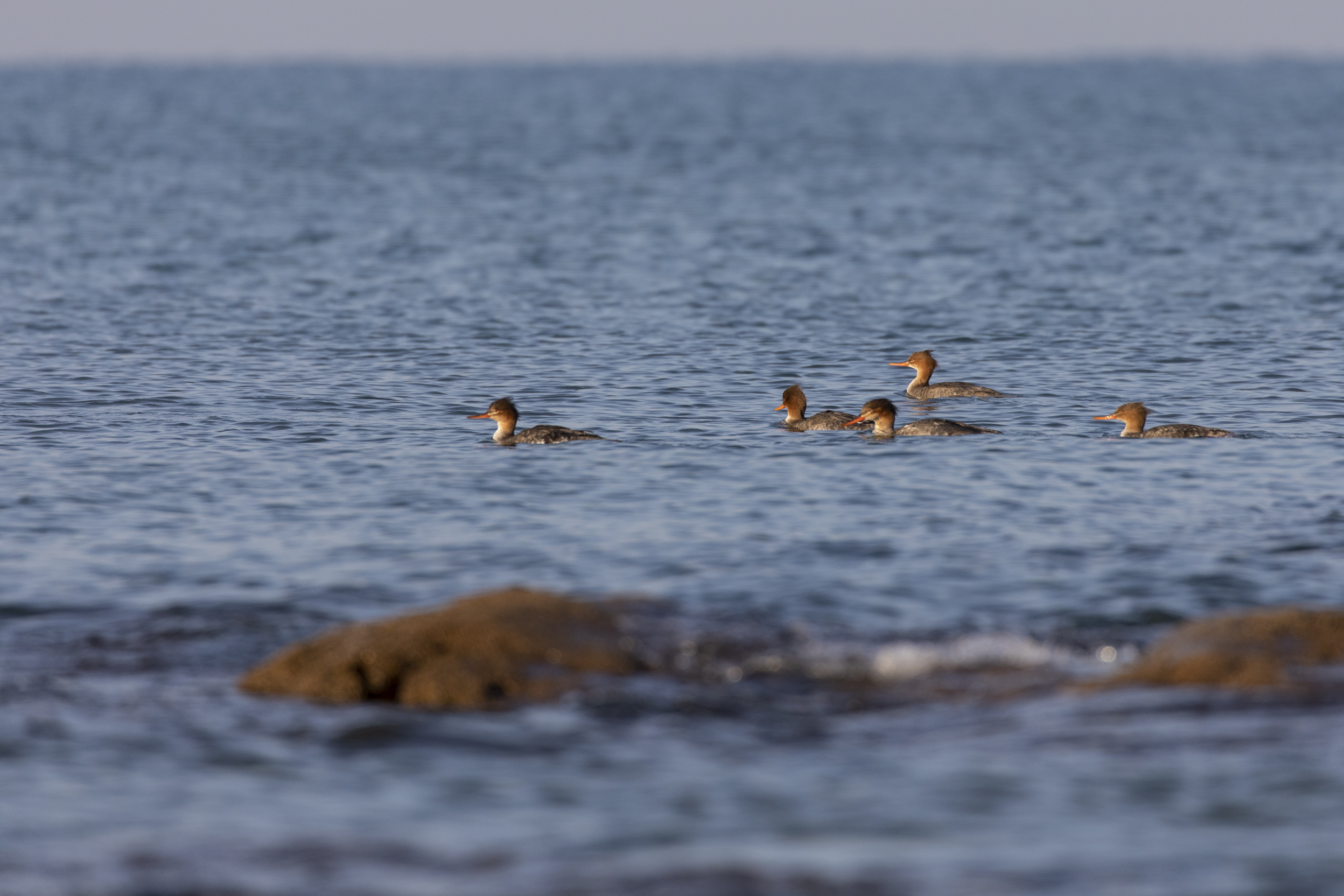 Lo Smergo minore (Mergus serrator), anatra tuffatrice diffusa in gran parte dell’emisfero settentrionale è un abile nuotatore e pescatore (di pesci, insetti acquatici, rane e crostacei). Possiede una cresta appuntita, un becco sottile dai margini seghettati e una grande apertura alare (fino ad 86 cm), è uno tra gli anatidi più veloci nel volo orizzontale.