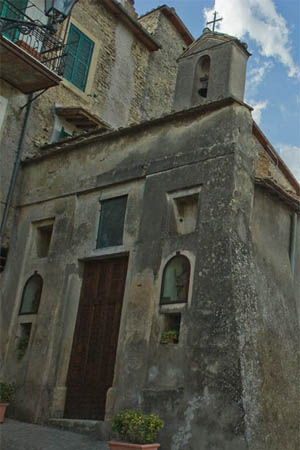 Eretta probabilmente alla fine del secolo X dai monaci benedettini di Farfa, la potente abbazia che a lungo estese i suoi domini su buona parte della Sabina, sorge su un poggio isolato poco più in basso del palazzo Del Drago. Accanto al campanile, risalente al secolo XI, la chiesa è in forme romaniche e custodisce all'interno preziosi affreschi del XIII secolo, purtroppo assai deteriorati.