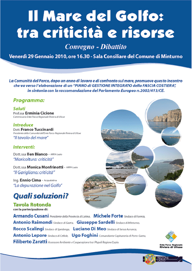 Il convegno-dibattito si terrà il 29 Gennaio 2010 alle ore 16.30 presso la Sala Consiliare del Comune di Minturno.