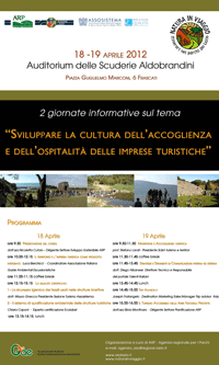 Si sono concluse, presso l'Auditorium delle Scuderie di Palazzo Aldobrandini a Frascati (Rm), le due giornate informative sul tema: "Sviluppare la cultura dell'Accoglienza e dell'Ospitalità delle imprese turistiche" organizzato dall' Agenzia Regionale Parchi in collaborazione con Assosistema - Associazione Sistema Industriale Integrato Servizi Tessili e Medici Affini.