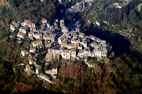 A picco sulla valle del Treja, l'antico abitato di Mazzano conserva ancora il suo impianto urbanistico medievale, fatto di vicoli che seguono le pieghe della rupe modellata nella roccia vulcanica. L'unico accesso al paese è costituito da un arco a volta, piuttosto stretto.