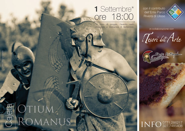 L'Associazione Sogni&Spade in collaborazione con l'ATS "I tesori dell'arte", con il patrocinio del Parco Regionale Riviera di Ulisse organizza la manifestazione "Cajeta Otium Romanus", un banchetto romano a cui il pubblico e i visitatori potranno prendere parte da protagonisti.