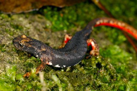 La salamandrina dagli occhiali ( Salamandrina perspicillata ) è un anfibio con la coda (urodelo), lungo circa 10 cm, che vive nell'area occidentale dell'Italia.