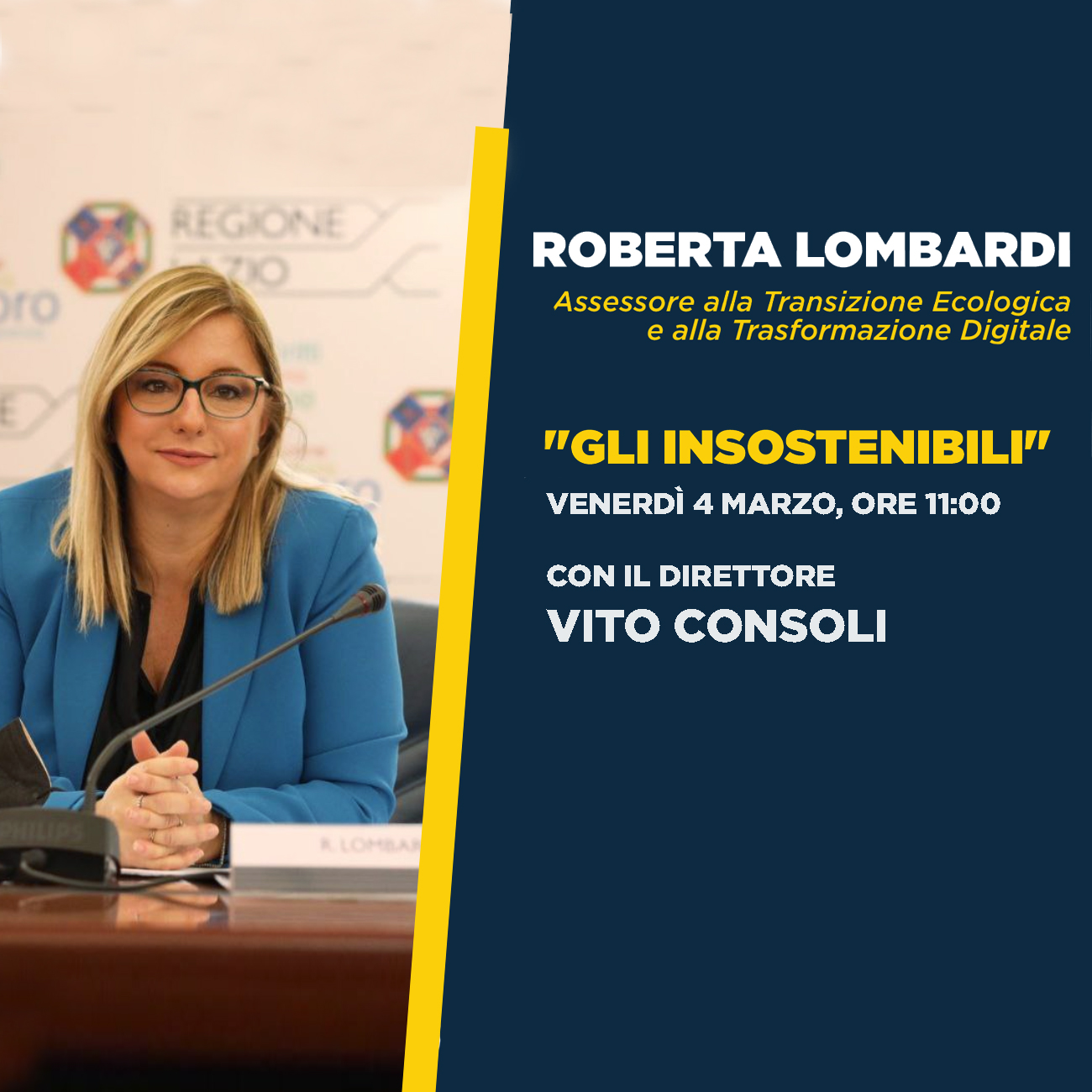 Venerdì 4 marzo 2022, alle ore 11:00, in onda il quinto appuntamento della nuova rubrica "Gli Insostenibili" di Roberta Lombardi - Assessora regionale alla Transizione Ecologica e Trasformazione Digitale - su Radio New Sound Level 90 FM insieme al direttore della Direzione regionale Ambiente, Vito Consoli.