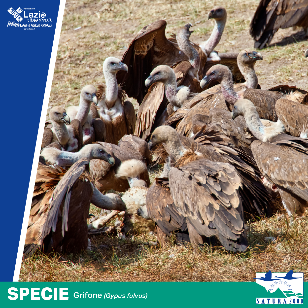 Il Grifone, Gypus fulvus, è un avvoltoio di grandi dimensioni (apertura alare di 240 – 280 cm) e facilmente distinguibile per il capo piccolo ed il collo assai lungo, che tuttavia durante il volo non è così evidente. È un avvoltoio coloniale che si nutre di carcasse di grossi mammiferi sia domestici (pecore, bovini, equini) che selvatici (cervi, cinghiali).