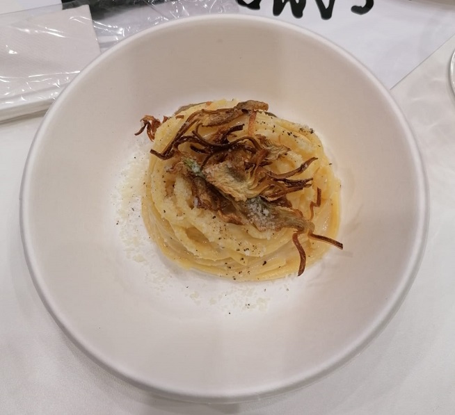 tonnarelli o spaghetti, pecorino romano, carciofi romaneschi, 2 cucchiai di pepe nero in grani