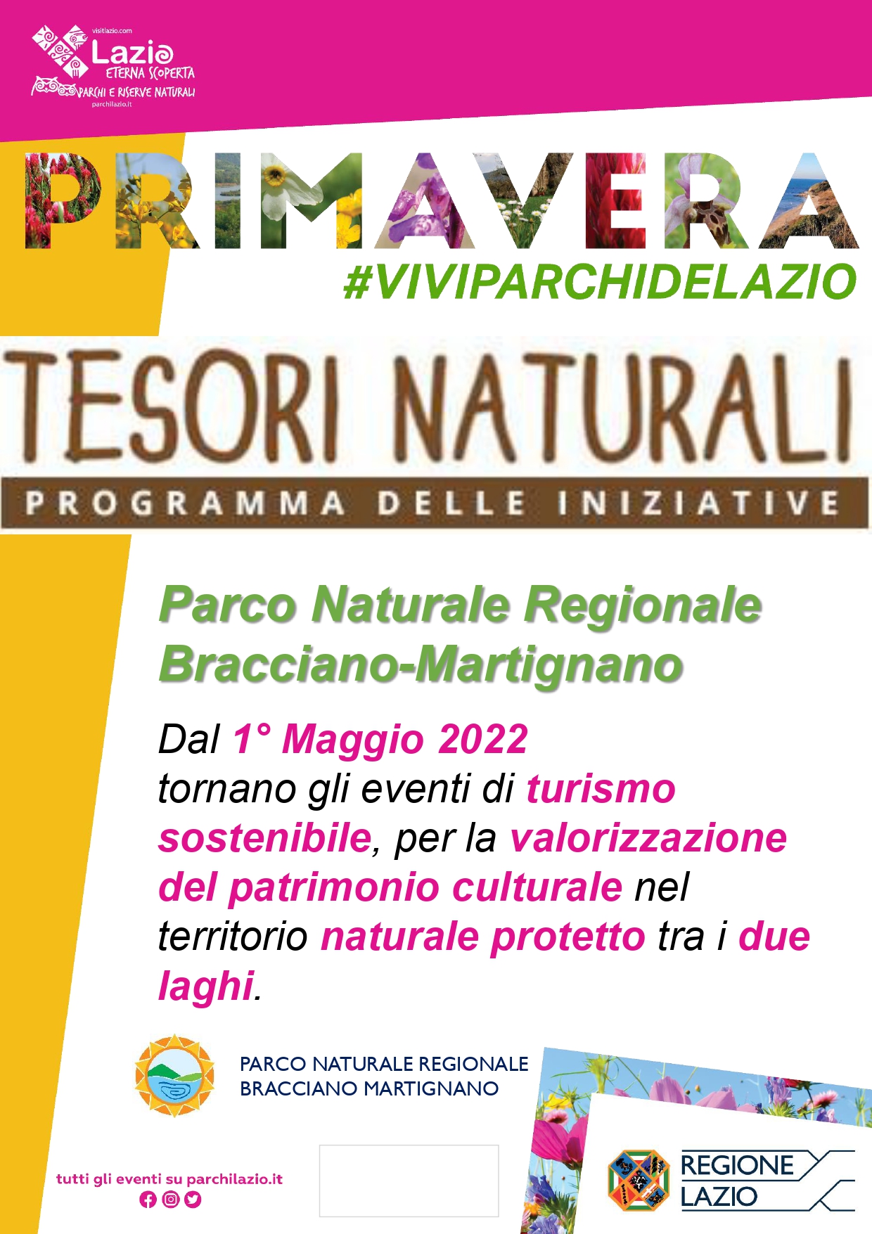 Tesori naturali, tornano gli eventi itineranti alla scoperta del Parco Naturale Regionale Bracciano Martignano. Per il quinto anno consecutivo, dal 1° Maggio e fino a Dicembre 2022, ci sarà la possibilità di partecipare al programma promosso dalla Regione Lazio nell’ambito del progetto regionale Giorni Verdi - Vivi i Parchi del Lazio. Tra associazioni e ONLUS individuate in un bando pubblico, 17 realtà territoriali accompagneranno la comunità locale, turisti e visitatori alla scoperta di storia, archeologia, tradizione, cultura, enogastronomia e biodiversità dell’area protetta lacustre. Gli appuntamenti sono nel fine settimana. “Le attività inserite nel catalogo sono un formidabile strumento per far conoscere il territorio del Parco e le zone limitrofe – affermano Vittorio Lorenzetti e Daniele Badaloni, presidente e direttore dell’Ente Parco Naturale Regionale Bracciano Martignano - scoprendone la natura, i paesaggi ma anche gli aspetti storico-culturali, enogastronomici e archeologici nel rispetto dell’ambiente e delle comunità locali: rappresentano concrete proposte che auspichiamo potranno avere anche positive ricadute economiche sulle comunità locali ed i Comuni”.