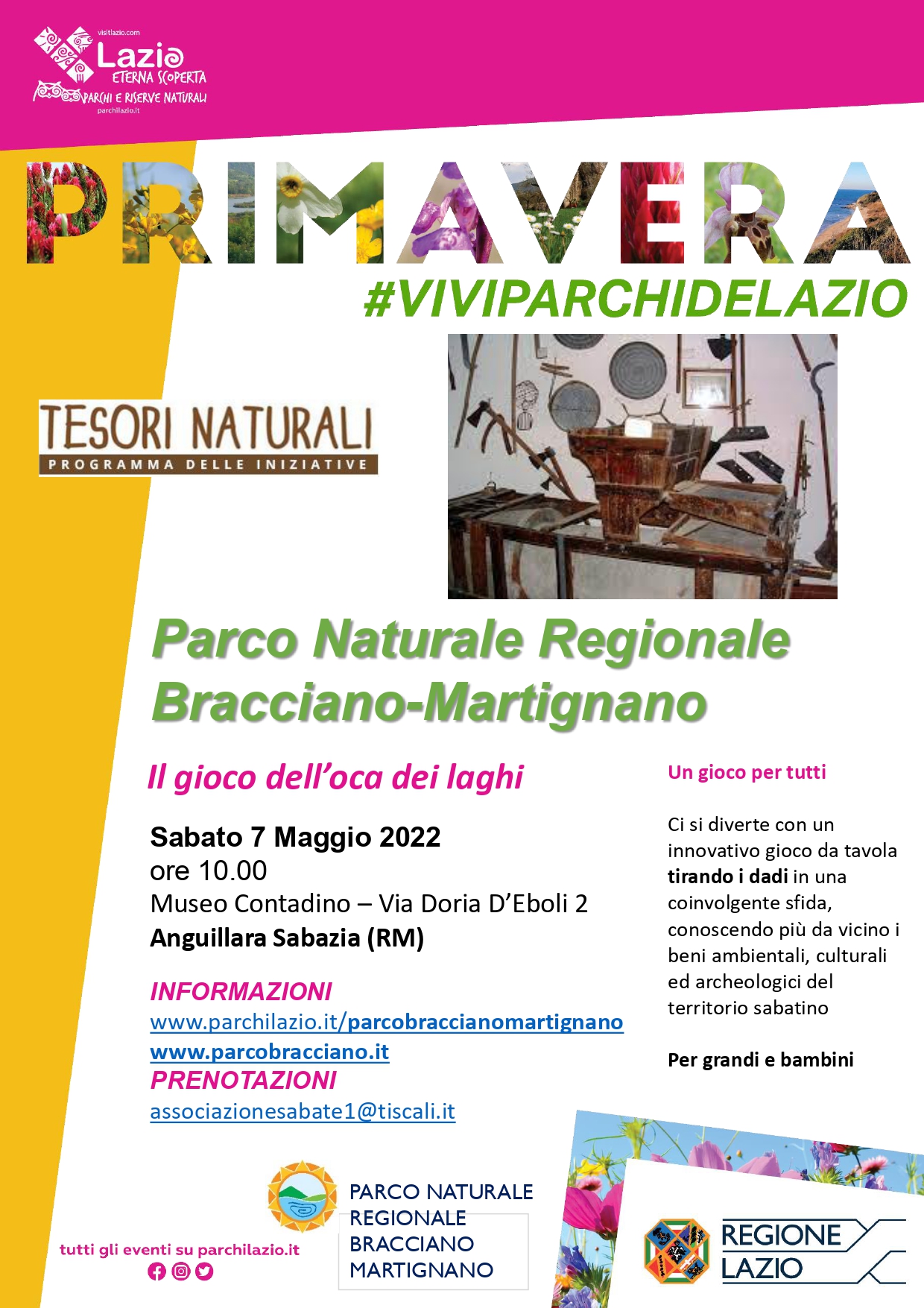 Al Museo Storico della civiltà contadina e della cultura popolare ‘Augusto Montori’ ci si diverte con “Il Gioco dell’Oca dei Laghi”, un innovativo gioco da tavolo ideato e realizzato dall’archeologa Elena Felluca. Tirando i dadi in una coinvolgente sfida i partecipanti conosceranno più da vicino, grazie all’aiuto dell’esperta Felluca, i beni ambientali, culturali ed archeologici del territorio sabatino