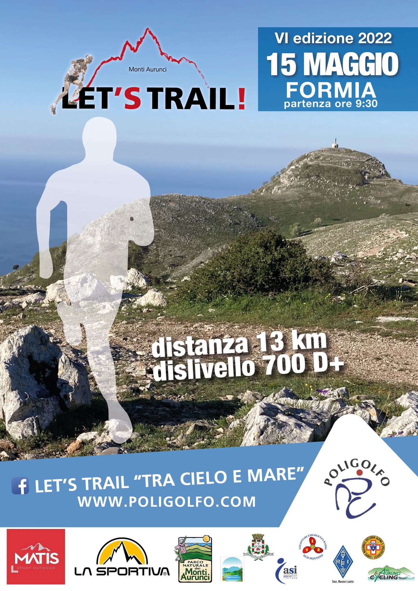 L’“A.S.D. Poligolfo” con il patrocinio e la collaborazione del Parco dei Monti Aurunci, della XVII Comunità Montana, del Comune di Formia (LT), dell’Ente di promozione sportiva ASI, del Soccorso Alpino – Stazione di Cassino, della Protezione Civile VER Sudpontino, del gruppo ciclistico “ASD Aurunci Cycling Team” e dell’Associazione Radioamatori Italiani – Sez. Basso Lazio, organizza la 6a edizione della gara di corsa in montagna Let’sTrail! “Monti Aurunci – Tra cielo e mare”.