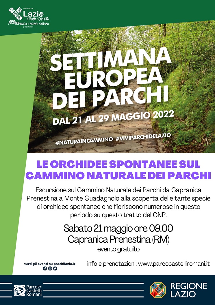 In occasione della Settimana Europea dei Parchi, vi proponiamo questa escursione sul Cammino Naturale dei Parchi da Capranica Prenestina a Monte Guadagnolo alla scoperta delle tante specie di orchidee spontanee che fioriscono numerose in questo periodo su questo tratto del CNP.
