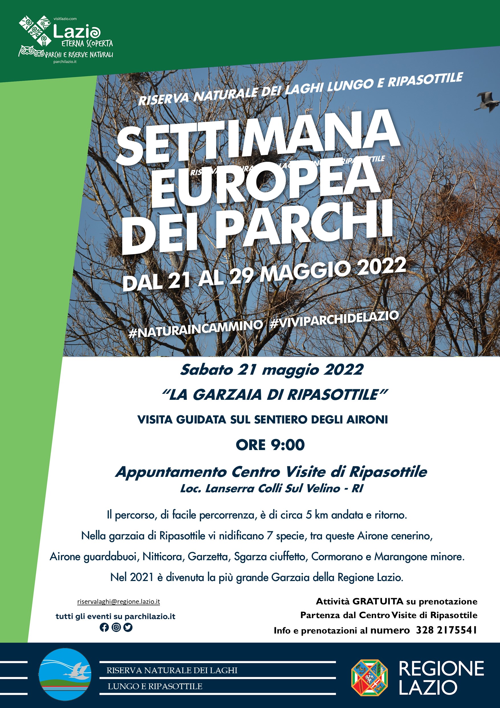 La Riserva Naturale dei Laghi Lungo e Ripasottile, dal 21 al 29 maggio 2022, festeggia la SETTIMANA EUROPEA DEI PARCHI.