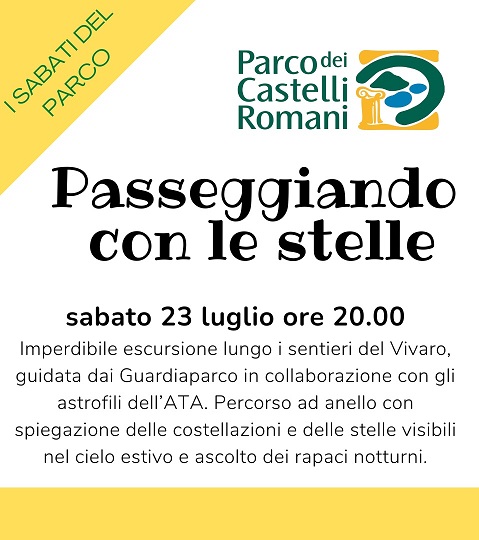 Sabato 23 luglio alle ore 20:00, appuntamento all'Osservatorio Astronomico "Livio Gratton" di Rocca di Papa (RM) - località Vivaro, per la passeggiata notturna con i Guardiaparco e gli Astrofili dell'Associazione Tuscolana di Astronomia
