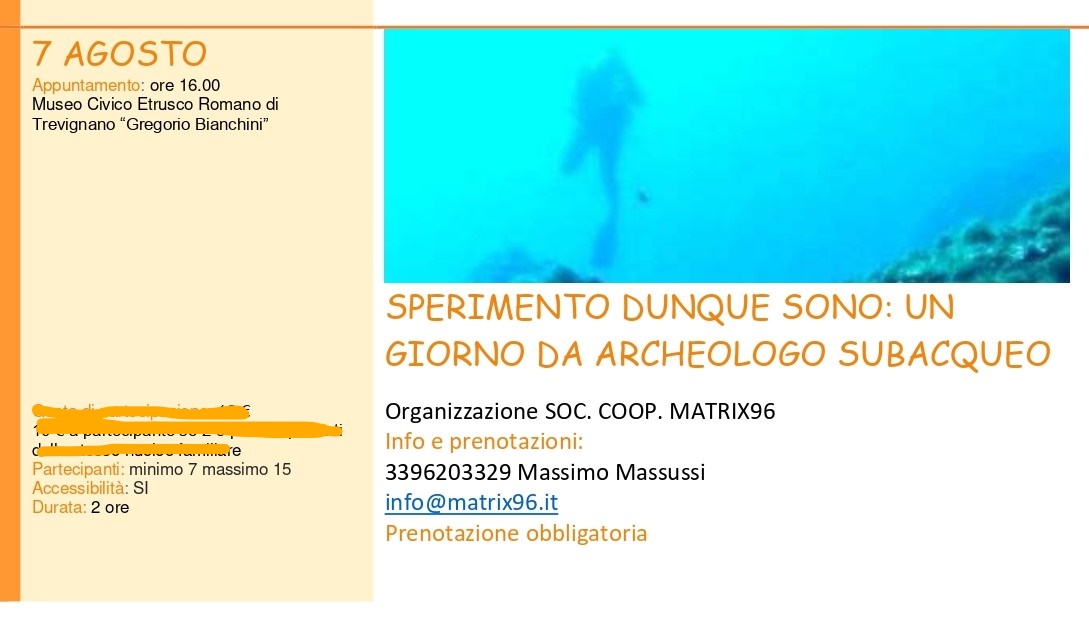Attività educativa-archeologica attraverso i ritrovamenti dell’archeologia subacquea. Prevista una visita introduttiva al Museo Civico Etrusco Romano 'Gregorio Bianchini' di Trevignano Romano (Roma).
