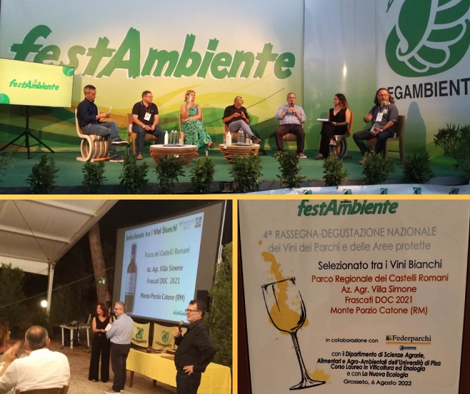 Nella serata di sabato 6 agosto, si è svolta la 4° Rassegna-Degustazione Nazionale di Vini dei Parchi e delle Aree Protette, in collaborazione con Federparchi. Tra i vini in concorso, esaminati e valutati da una commissione formata da tecnici ed esperti degustatori, è stato selezionato e premiato anche il vino bianco Frascati DOC 2021, dell’Azienda Villa Simone di Monte Porzio Catone (RM).