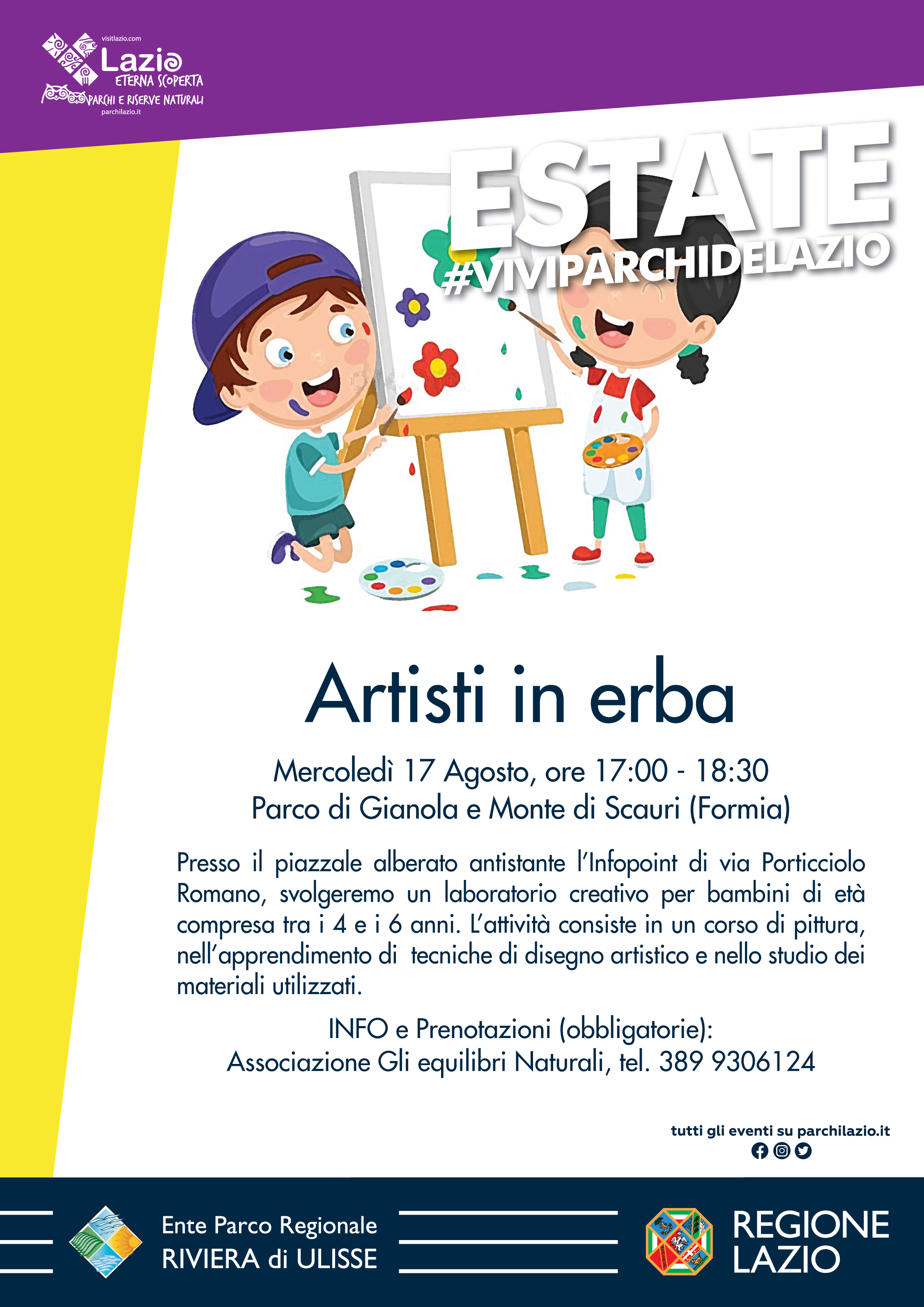 Presso il piazzale alberato antistante l'Infopoint di via Porticciolo Romano, svolgeremo un laboratorio creativo per bambini di età compresa tra i 4 e i 6 anni. L'attività consiste in un corso di pittura, nell'apprendimento di tecniche di disegno artistico e nello studio dei materiali utilizzati.