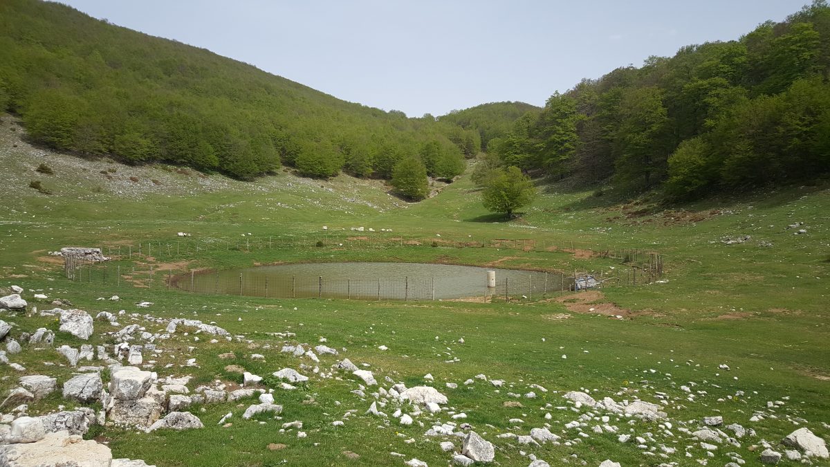 Poco sopra il volubro, risalendo una vallecola aperta, in direzione Est, e poi un bosco, si raggiunge il Rifugio Rocca d’Abate di Civita d’Antino (foto), gestito dal Cai della Val Roveto (per la prenotazione del rifugio questa la pagina del loro sito web) e la strada bianca che abbiamo lasciato molto più in basso. Proseguendo sulla stessa per qualche chilometro, dove sul crinale spartiacque della Serra Lunga sorge un abbeveratoio (Forchetta Morrea), si comincia a ridiscendere sul versante nord orientale lungo una sterrata mulattiera immersi nel bosco di Faggi.