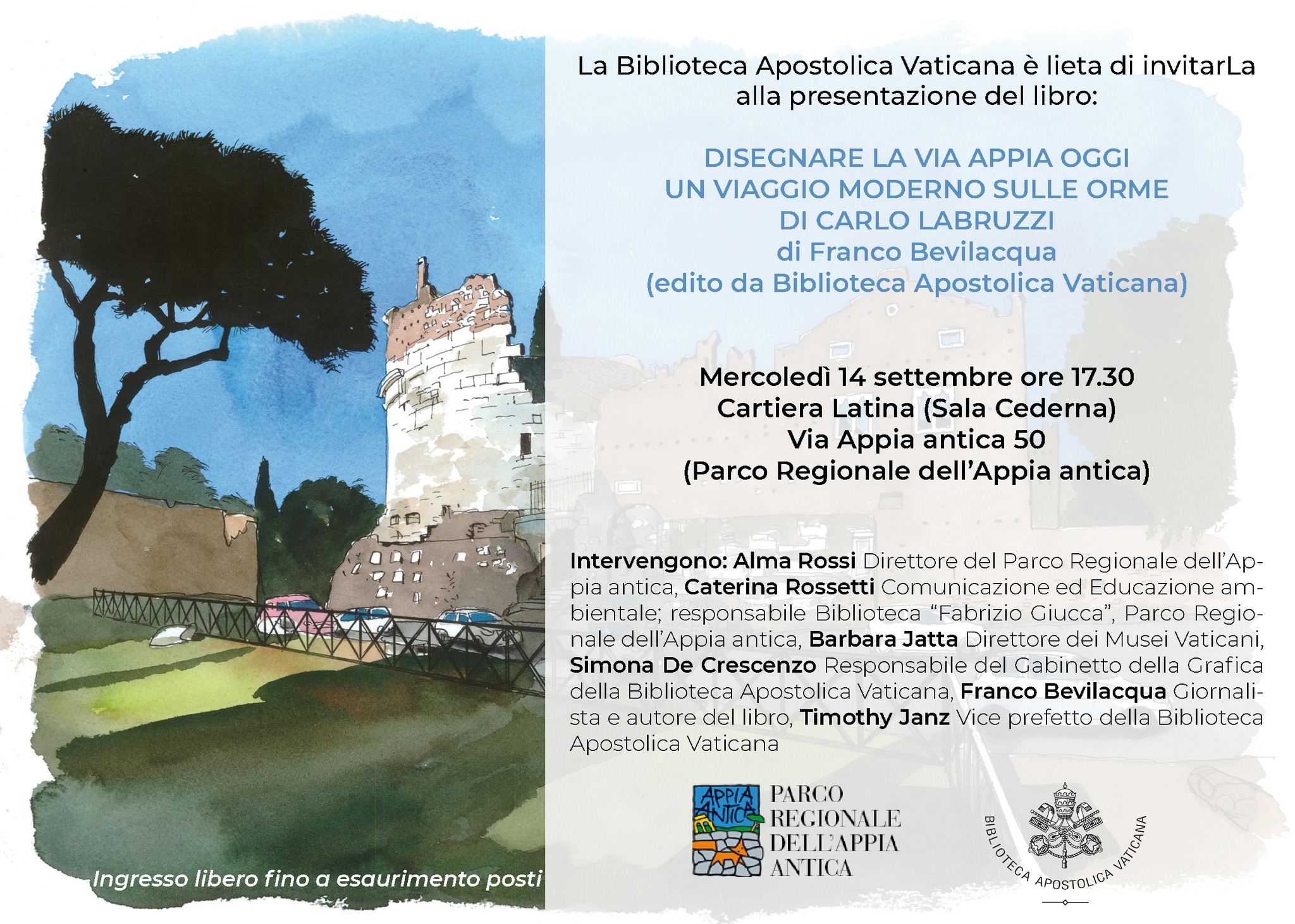 Oggi alla Cartiera Latina presso la Sala Conferenze antonio Cederna presentazione del volume Disegnare la via Appia: un viaggio moderno sulle orme di Carlo Labruzzi, di Franco Bevilacqua edito dalla Biblioteca Apostolica Vaticana.