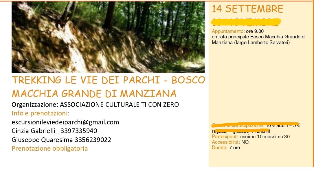 Organizzazione: TI CON ZERO – LE VIE DEI PARCHI