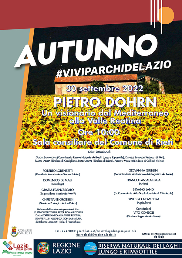Il 30 settembre 2022 la Riserva Naturale dei Laghi Lungo e Ripasottile presenta un convegno di studi su Pietro Dohrn. L'evento rientra nelle attività organizzate all'interno del programma VIVIPARCHIDELAZIO.