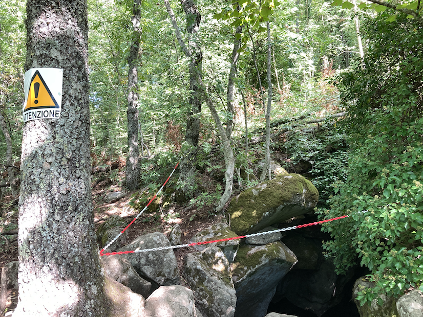 Attorno alla cavità sono stati apposti segnaletica di avvertimento e limiti di sicurezza che preghiamo di osservare. Grazie per la collaborazione.