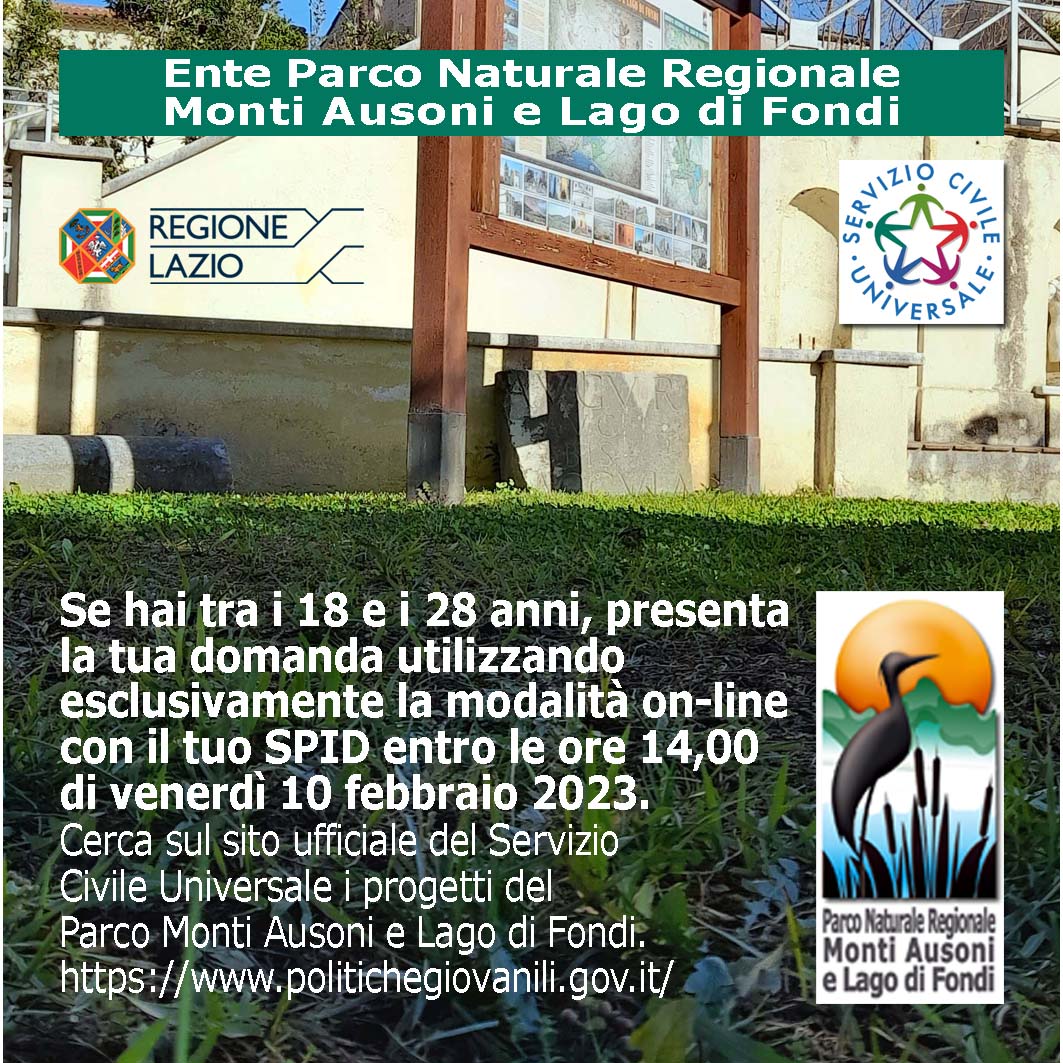 Indicazioni PARCO MONTI AUSONI E LAGO DI FONDI: Servizio Civile Universale, Via Cavour, 46 – Fondi (LT) - Email: parcoausoni@regione.lazio.it - Tel. 0771.503644.