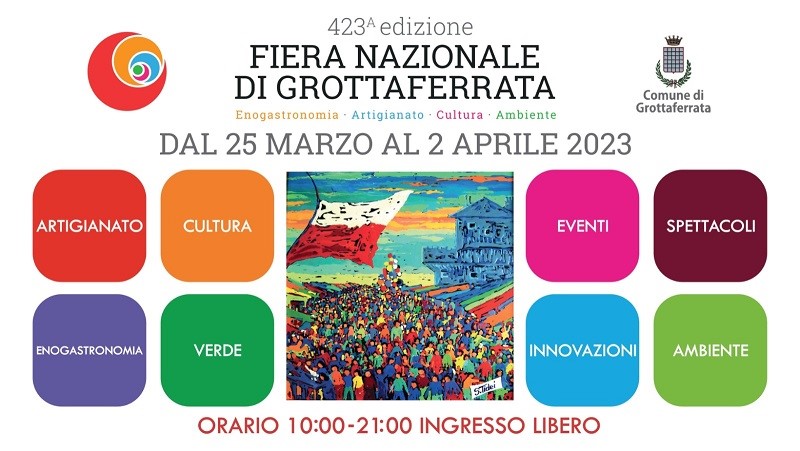 La 423ª Fiera nazionale di Grottaferrata si apre domani, Sabato 24 Marzo, e si chiuderà Domenica 2 Aprile. Orari dei padiglioni: dalle ore 10.00 alle ore 21.00.