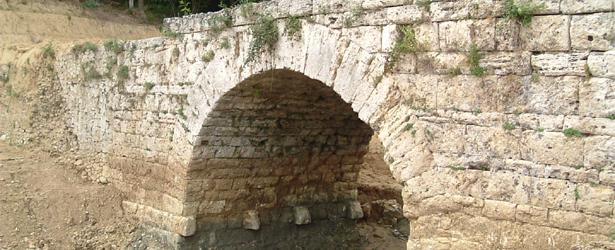 Si tratta di un ponte molto ben conservato e recentemente portato alla luce per tutta la sua altezza. Rappresenta un tratto originale dell'antica Via Valeria, importante arteria di collegamento fra Roma e l'Adriatico attraverso gli Appennini. La volta e i fianchi sono formati da grossi blocchi di travertino, mentre il fondo stradale è di basoli calcarei modellati dal passaggio delle ruote dei carri.