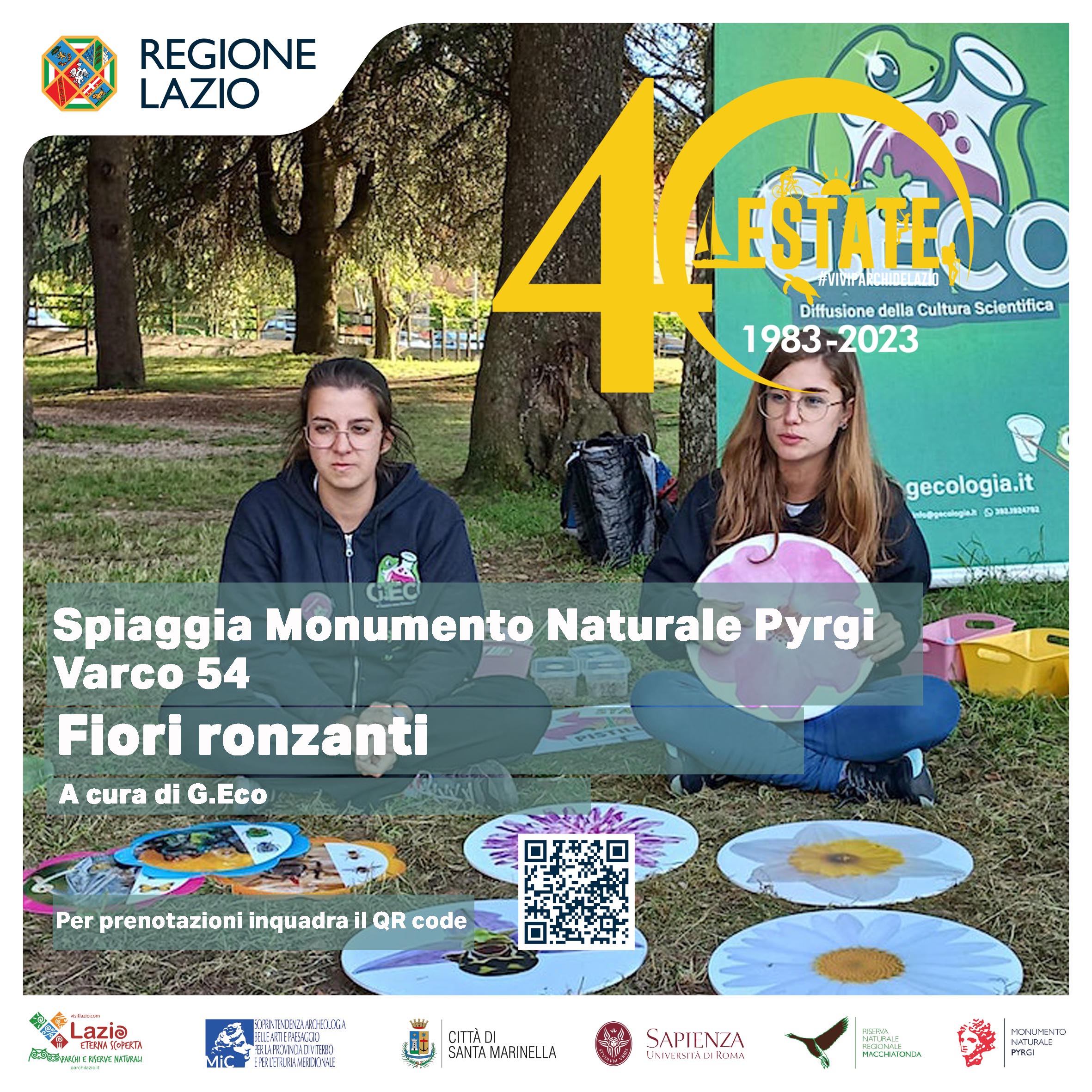 In occasione del 40 esimo anniversario dell'istituzione della Riserva Naturale di Macchiatonda, sabato 12 e domenica 13 agosto 2023 presso la Spiaggia del Monumento Naturale di Pyrgi - ingresso al Varco 54 "Fiori ronzanti! acura di G.Eco come sono fatti i fiori? E come fanno le piante a “trovare l’anima gemella”? Hanno dei validi aiutanti a 6 zampe: gli insetti impollinatori! Ma non tutti, hanno gli stessi gusti. C’è chi ama i fiori piccoli con il nettare in fondo da succhiare, chi ha bisogno di stami ben visibili da leccare e chi invece necessità di una solida pista di atterraggio. Vieni a scoprire il meraviglioso mondo dei fiori e degli insetti.
