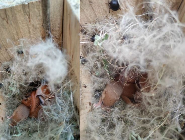 La fase di controllo delle cassette nido per il monitoraggio regionale del Moscardino dà i suoi frutti; nelle foto, si intravedono i piccoli che una femmina della specie ha dato alla luce, avvolti molto probabilmente nei filamenti piumosi dei frutti di Vitalba (una pianta perenne e rampicante piuttosto comune), con i quali ha preparato il nido. La presenza del piccolo roditore della famiglia dei gliridi è quindi una realtà stabile nel Parco dei Castelli Romani, evidentemente in possesso delle condizioni adatte affinché questa popolazione possa continuare a svilupparsi.