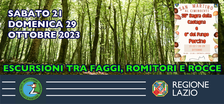 Sabato 21 e Domenica 29 Ottobre, in occasione della 35ma Sagra della Castagna e della 6ta Sagra del Fungo Porcino organizzate dalla Pro Loco di San Marino al Cimino (Vt), la Riserva Naturale Lago di Vico metterà a disposizione del personale per due interessanti e piacevoli camminate che attraverseranno il territorio dell'area protetta e alcuni circostanti.