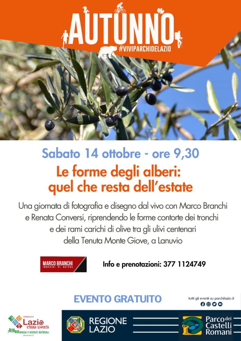 Una giornata di fotografia e disegno dal vivo con Marco Branchi e Renata Conversi, tra le forme contorte degli ulivi centenari della Tenuta Monte Giove a Lanuvio.
