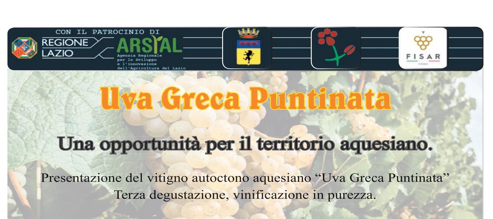 Presentazione del vitigno autoctono aquesiano Uva Greca Puntinata. Degustazione, vinificazione in purezza.