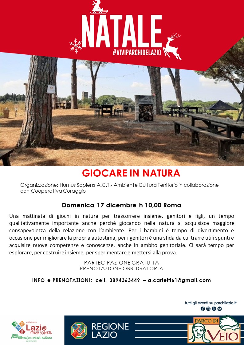 Domenica 17 dicembre il parco di Veio organizza Giocare in natura