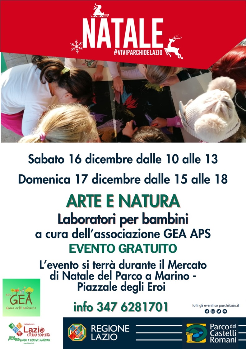 Sabato 16 dicembre dalle 10:00 alle 13:00 e domenica 17 dicembre dalle 15:00 alle 18:00, si svolgeranno, durante il Mercato del Parco, i laboratori per bambini a cura dell’associazione ‘GEA APS’.