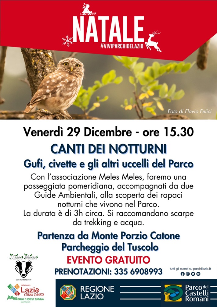 Appuntamento alle ore 15:30 a Tuscolo, per un’escursione di circa tre ore, alla scoperta dei rapaci notturni che vivono nel Parco.