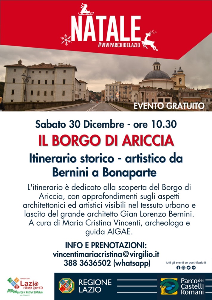Appuntamento alle ore 10:30, per un itinerario storico-artistico dal Bernini a Bonaparte nel Borgo di Ariccia, con approfondimenti architettonici ed artistici visibili nel tessuto urbano.