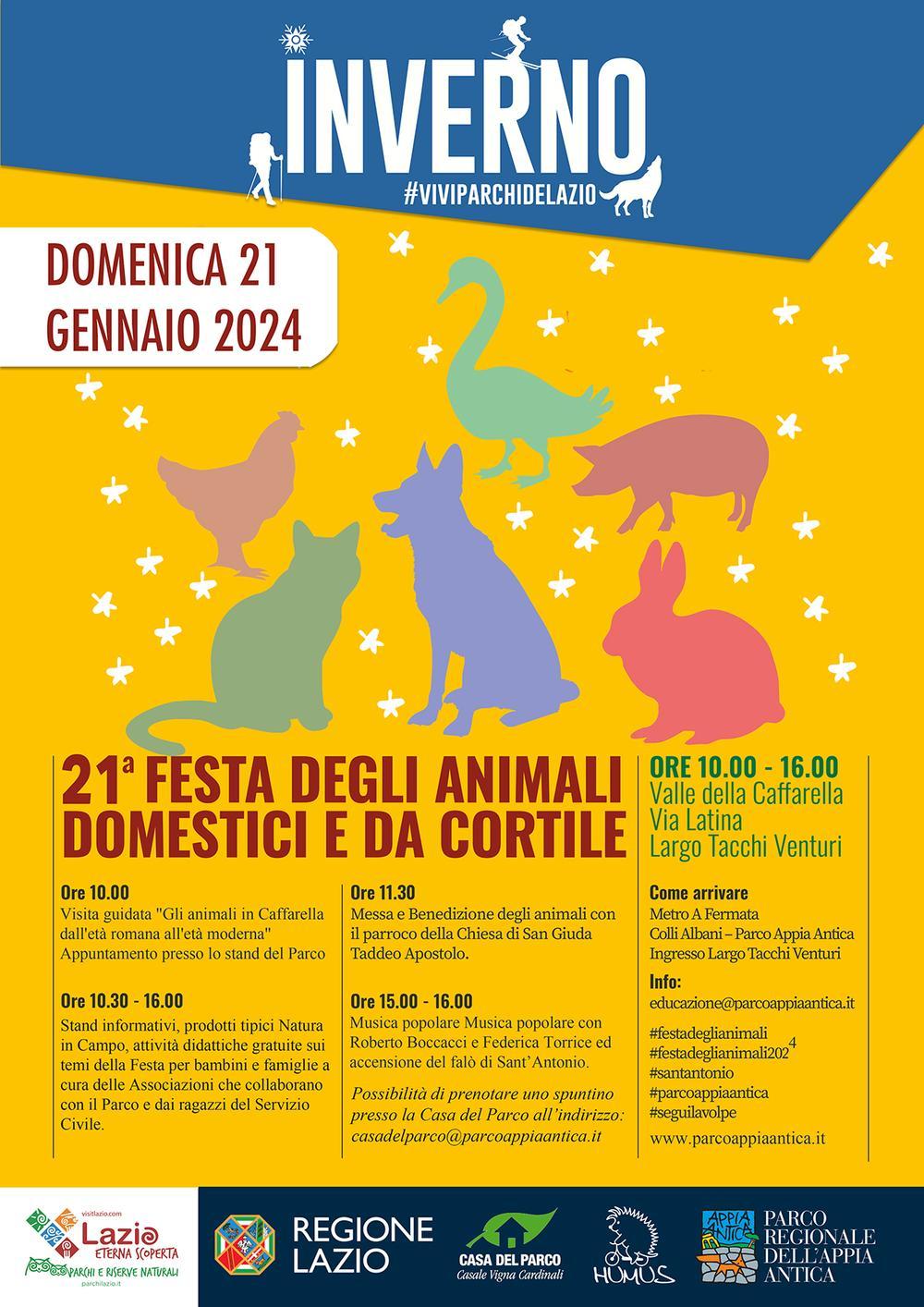 In coincidenza con la ricorrenza di Sant'Antonio Abate, domenica 21 gennaio, presso la valle della Caffarella, si svolgerà la "Festa degli animali domestici e da cortile".